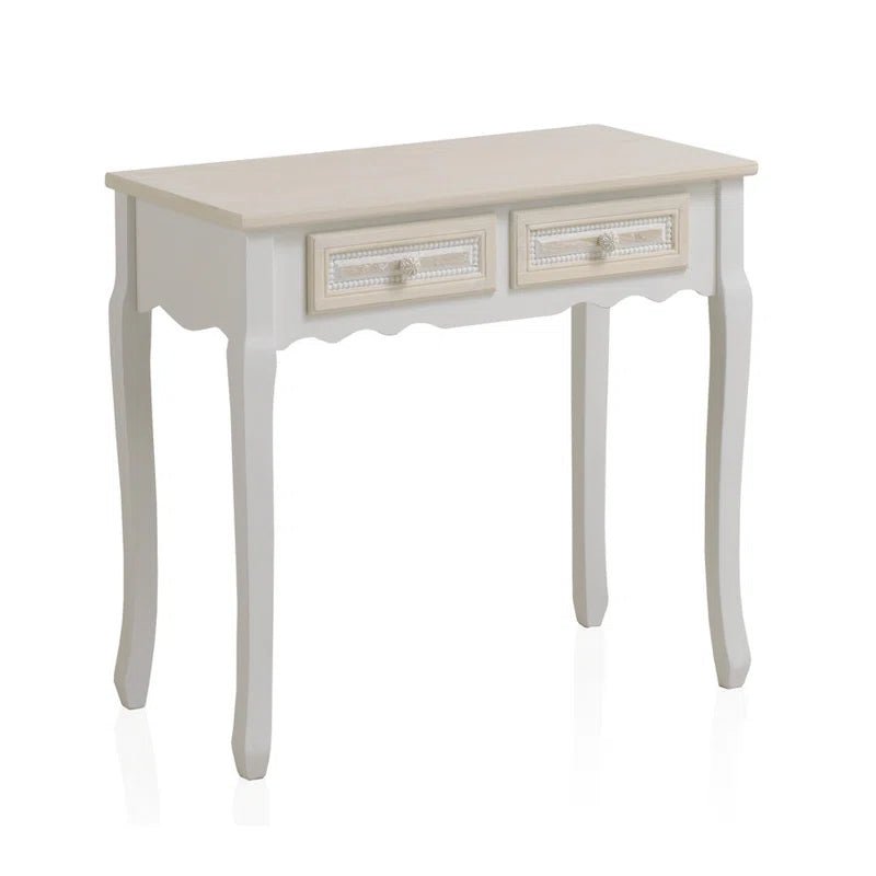 The cream-colored console table adds a touch of elegance to any dining room or living space. With beautifully decorated drawer fronts and sleek wooden handles, this table blends functionality and style effortlessly. The drawers provide convenient storage for your essentials while the smooth cream finish on the top gives it a refined, timeless look. Crafted from high-quality manufactured wood, this piece is not only durable but also a perfect addition to complement modern interiors. It brings both storage and style to your home, making it ideal for any contemporary setting. Product Specifications: Primary Material: Manufactured Wood Colour: Cream Dimensions: Height: 75 cm Width: 80 cm Depth: 40 cm Room Type: Dining Room Warranty: 5 Years Manufactured Warranty Replacement Policy: 7 Days Replacement Policy Note: Furniture products are made to order and will take 10-20 days for delivery. Q&A: What is the main color of the console table?The console table features a beautiful cream color, offering a soft and elegant look to complement various interiors. What are the features of the drawers on this console table?The drawers are designed with decorative fronts and come with wooden handles for a stylish and functional design. What material is the console table made from?The table is made from durable manufactured wood, ensuring both longevity and a smooth finish for a timeless aesthetic. For more information or customization, contact customer support at +91 7017968634, Monday to Saturday, from 10 AM to 7 PM.