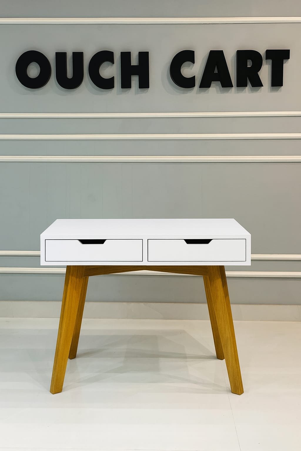 Grace White Colour Wooden Study Table with Two Drawer Storage