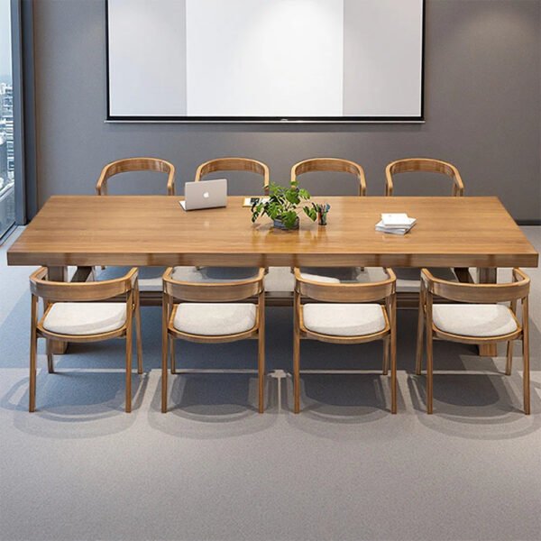 Nut-brown Rectangular Solid Wood Conference Table