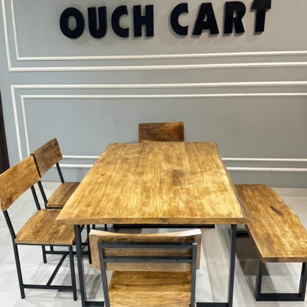 Solid Wood Industrial Dining Table Set with Bench & Chairs | Rustic Modern Design (6-Seater)