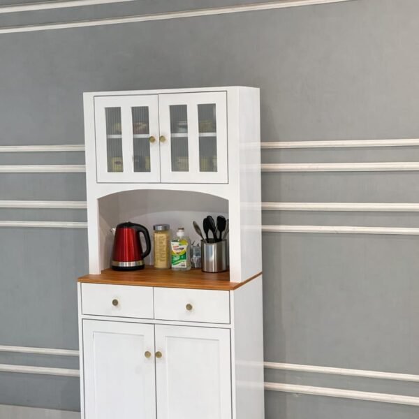 Buffet Cabinet with Hutch Kitchen Pantry Storage Cabinet White Sideboard for Kitchen Storage Microwave Cabinet with Storage, 4 Doors, 2 Adjustable Shelves & 1 Drawers