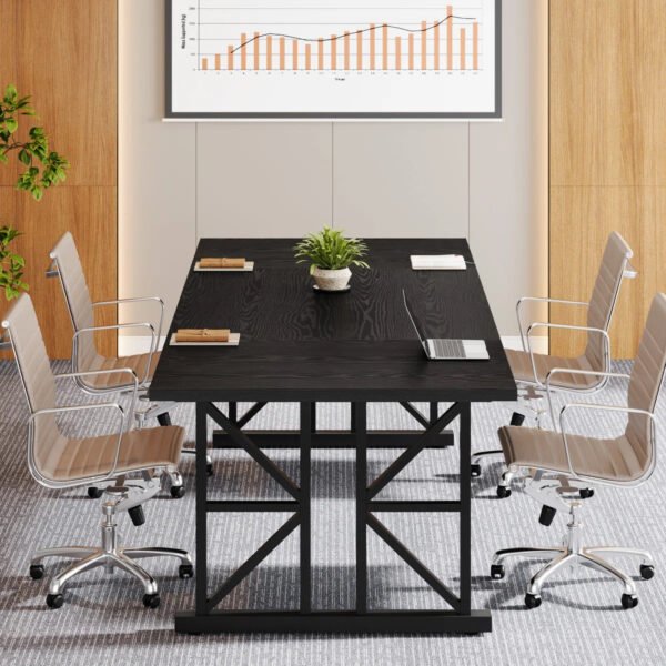 Conference Table With Unique Travertine Slab Top And Semi-Circular Stripe Base