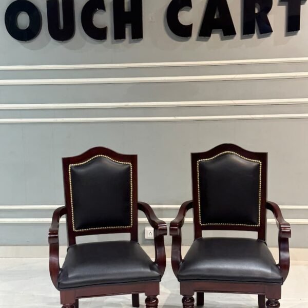 Premium Royal-Style Solid Wood Chair with Handcrafted Armrest Detailing – Standard Brown